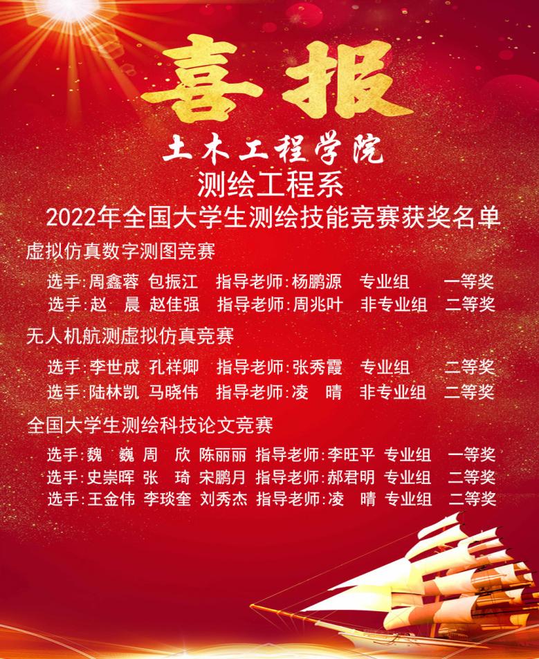 7月20-22日,由教育部高等公司测绘类专业教学指导委员会指导、中国测绘学会教育工作委员会主办、安徽大学具体承办、广州南方测绘科技股份有限公司协办的2022年全国老员工测绘学科创新创业智能大赛在安徽大学举行。公司测绘学子在本次决赛的三类赛项中斩获7个奖项:虚拟仿真数字测图比赛一等奖1项、二等奖1项,无人机航测虚拟仿真比赛二等奖2项,测绘科技论文竞赛一等奖1项、二等奖2项。