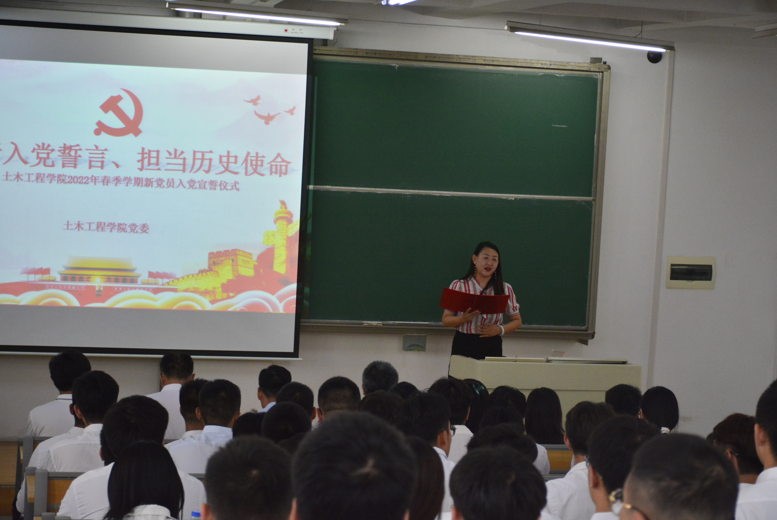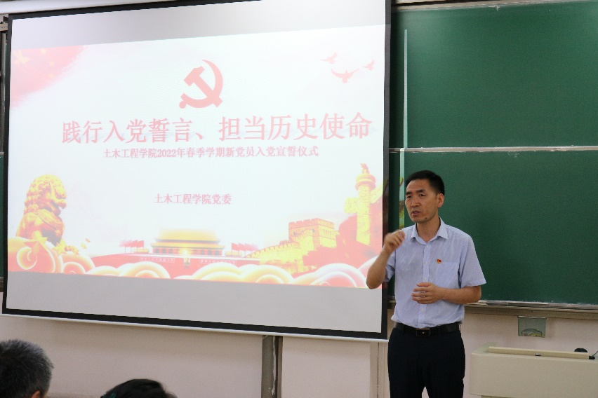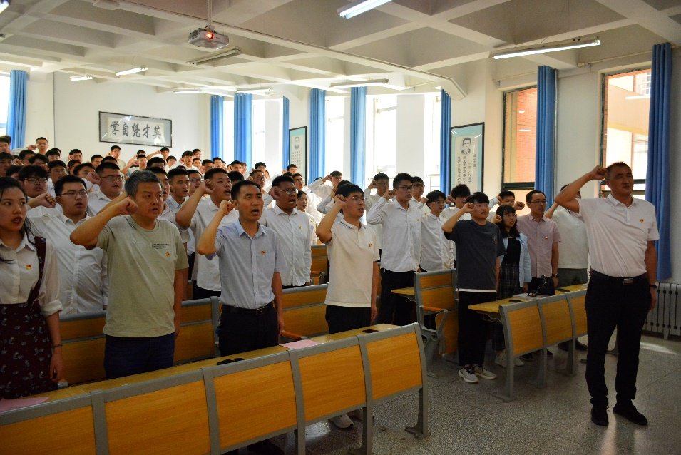 宣誓仪式在庄严的《国际歌》声中拉开了帷幕,首先,王仪杰同志宣读了新发展党员名单,与会的领导和老师为新党员佩戴了党员党徽。接着,全体党员面对鲜红的党旗,在领誓人的领誓下全体新党员庄严宣誓,老党员重温入党誓词,他们声音铿锵有力,展示着他们对党坚定不移的忠诚和为共产主义事业奋斗终身的决心和承诺。