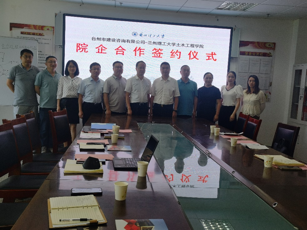 2022年6月23日,金年会jinnian与台州市建设咨询有限公司校企合作签约暨授牌仪式在土木公司会议室举行。台州市建设咨询有限公司总经理杨智勇,人力资源部经理张亚珍、副经理王涵竹,甘肃分公司总经理戴显义,金年会金字招牌诚信至上经理王文达教授、副经理殷占忠教授、李万润教授、建筑工程系主任吴长副教授、王永胜副教授,工程管理系主任刘平副教授出席了本次签约仪式。签约仪式由王文达主持。