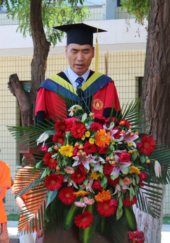 学位授予仪式上,公司领导和公司学位评定委员会成员为获得学位的毕业生颁授学位证书,为毕业生一一拨苏正冠,合影留念。毕业生代表为老师们献上了鲜花,感谢老师们的培养之恩,典礼在同学们热烈的掌声和温馨的氛围中落下了帷幕。