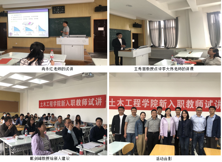 在试讲活动中,评课专家对教师基本素质、教学设计、教学内容、教学过程、教学技能等方面进行了认真评议,并对新入职教师在首次讲课存在问题和不足提出了宝贵意见和建议,同时希望青年教师态度上重视,行动上落实,以优秀教师为榜样,不断学习和改进,尽快成为一名合格的教师。