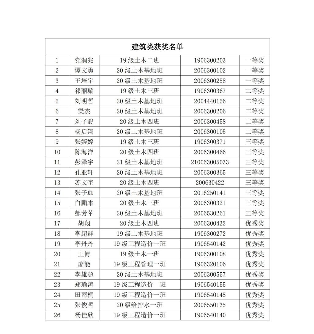 金年会官方网站入口第五届土木工程制图及CAD创新设计竞赛获奖名单