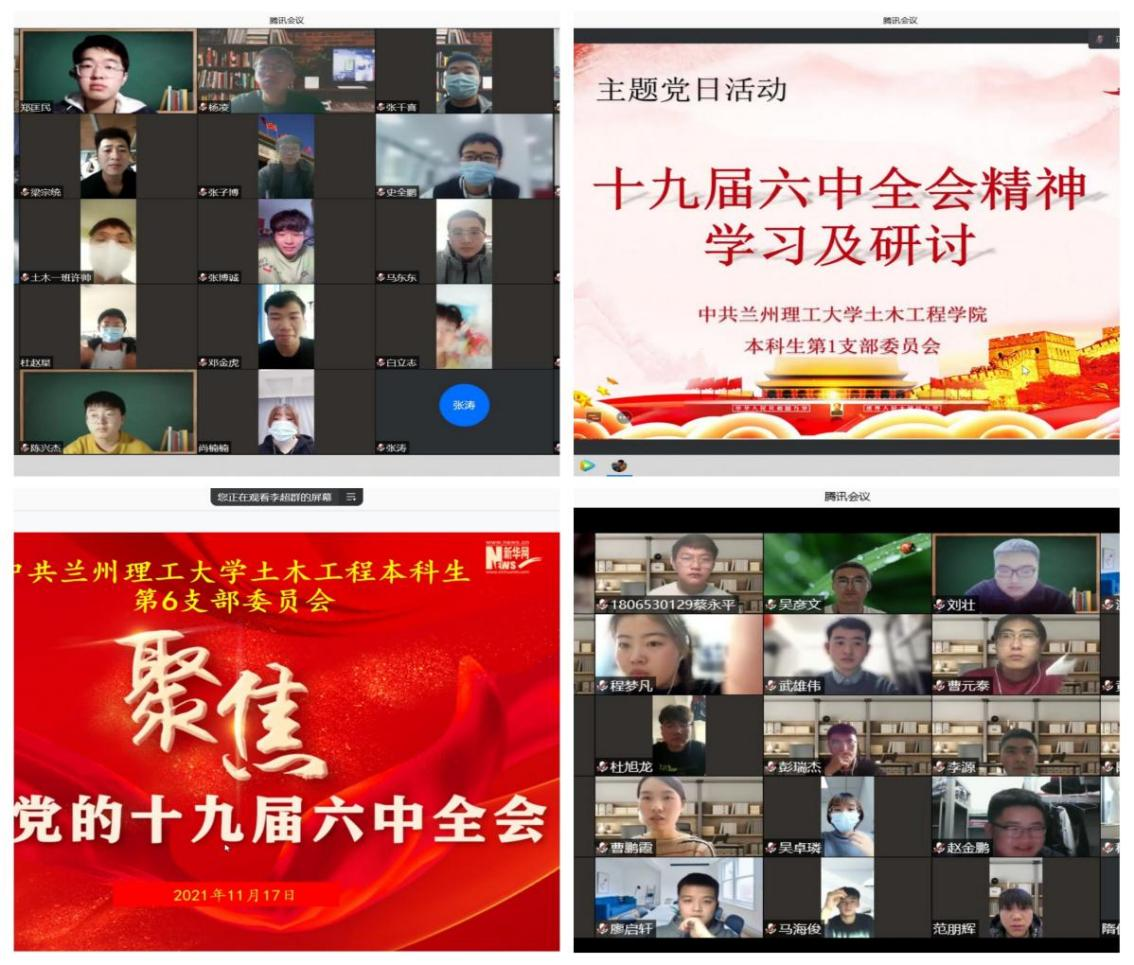土木工程本科生第2党支部党员龚金锋: 党的十九届六中全会是在“两个一百年”奋斗目标历史交汇点上召开的一次重要会议。作为一名即将毕业的毕业生党员,我一定要将这些内容融入思想政治理论的学习中,增强“四个意识”,坚定“四个自信”,做到“两个维护”,自觉锤炼党性修养,提高政治素养,为实现中华民族伟大复兴贡献青春、智慧和力量。