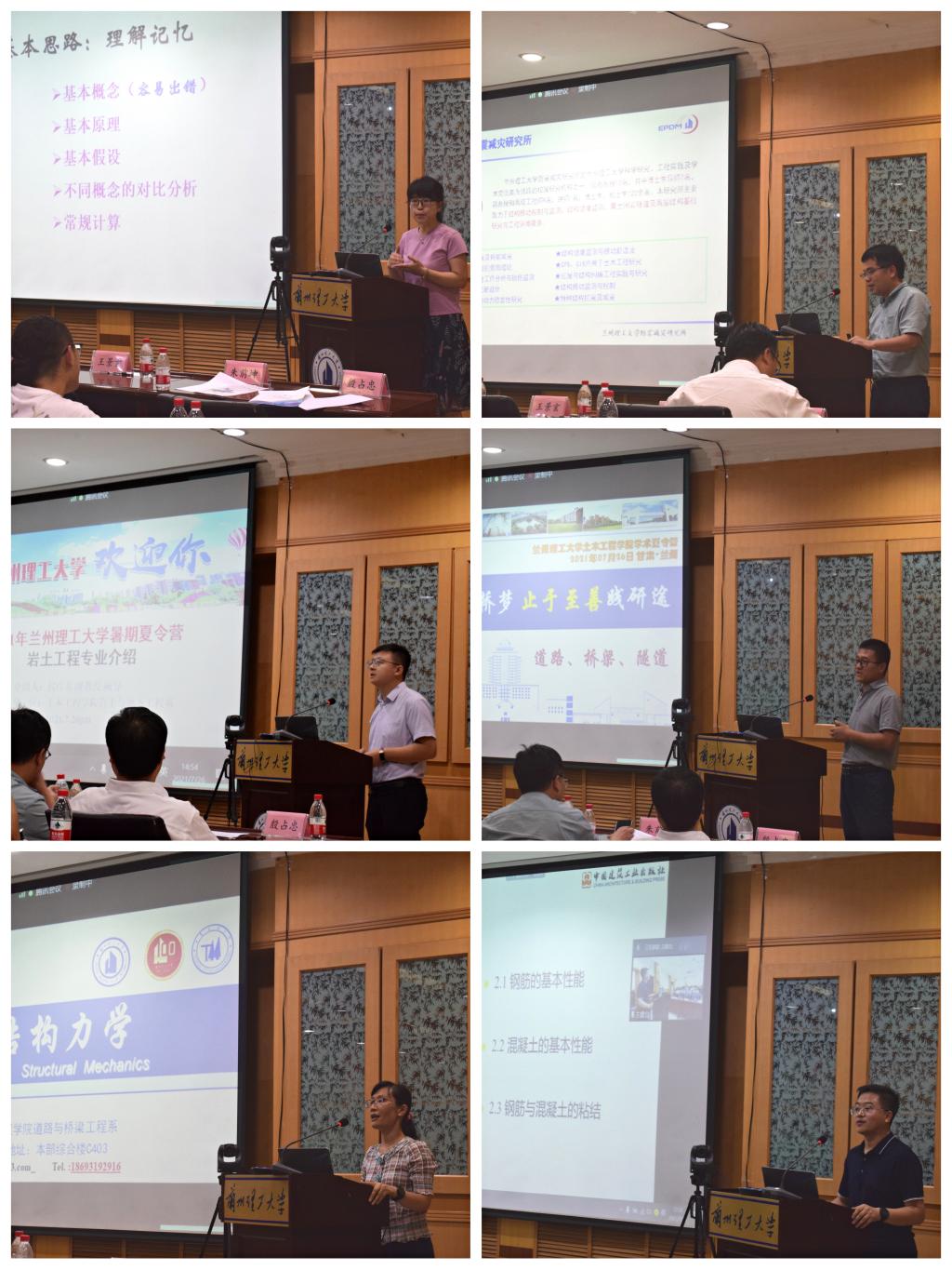 7月26日下午,金年会金字招牌诚信至上副经理殷占忠教授对研究生奖助学金设置情况进行了介绍,公司各研究团队也分别就各自学科领域的特点、专业结构、研究方向、团队团队等做了详细的介绍。丑亚玲教授、李喜梅副教授、王景玄副教授对专业核心课程土力学、结构力学、混凝土结构设计原理的重要知识点和难点进行了讲解。