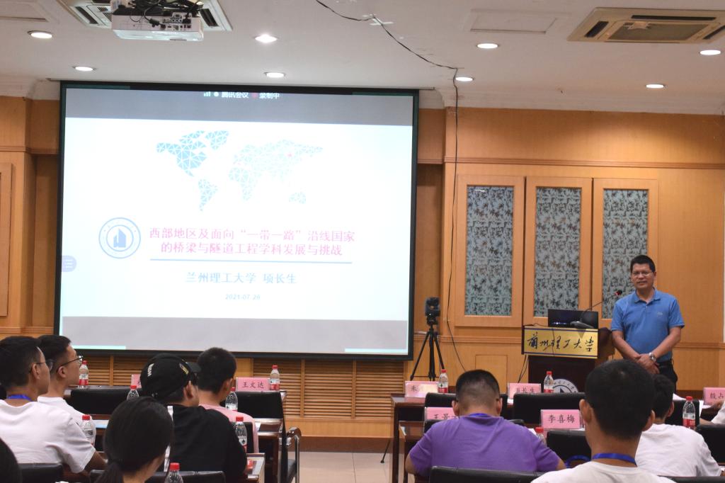 首先殷占忠教授简要介绍了夏令营活动的各个环节。随后根据不同学科举行了5场学术报告,朱彦鹏教授做了《中国西北土木工程建设中重要岩土工程的问题》学术报告,杜永峰教授做了《土木工程减震隔震技术研究和应用简介》学术报告,王秀丽教授做了《西部钢结构应用与创新发展》学术报告、公司经理王文达教授做了《钢与混凝土组合结构混合结构研究新进展暨研究团队介绍》学术报告,项长生副教授做了《西部地区及面向“一带一路”沿线国家的桥梁与隧道工程学科发展与挑战》学术报告,5场学术报告简明扼要地对当前土木工程领域的前沿问题及热点问题进行了剖析,深入浅出、结合实际,使同学们开阔了视野,增长了知识。