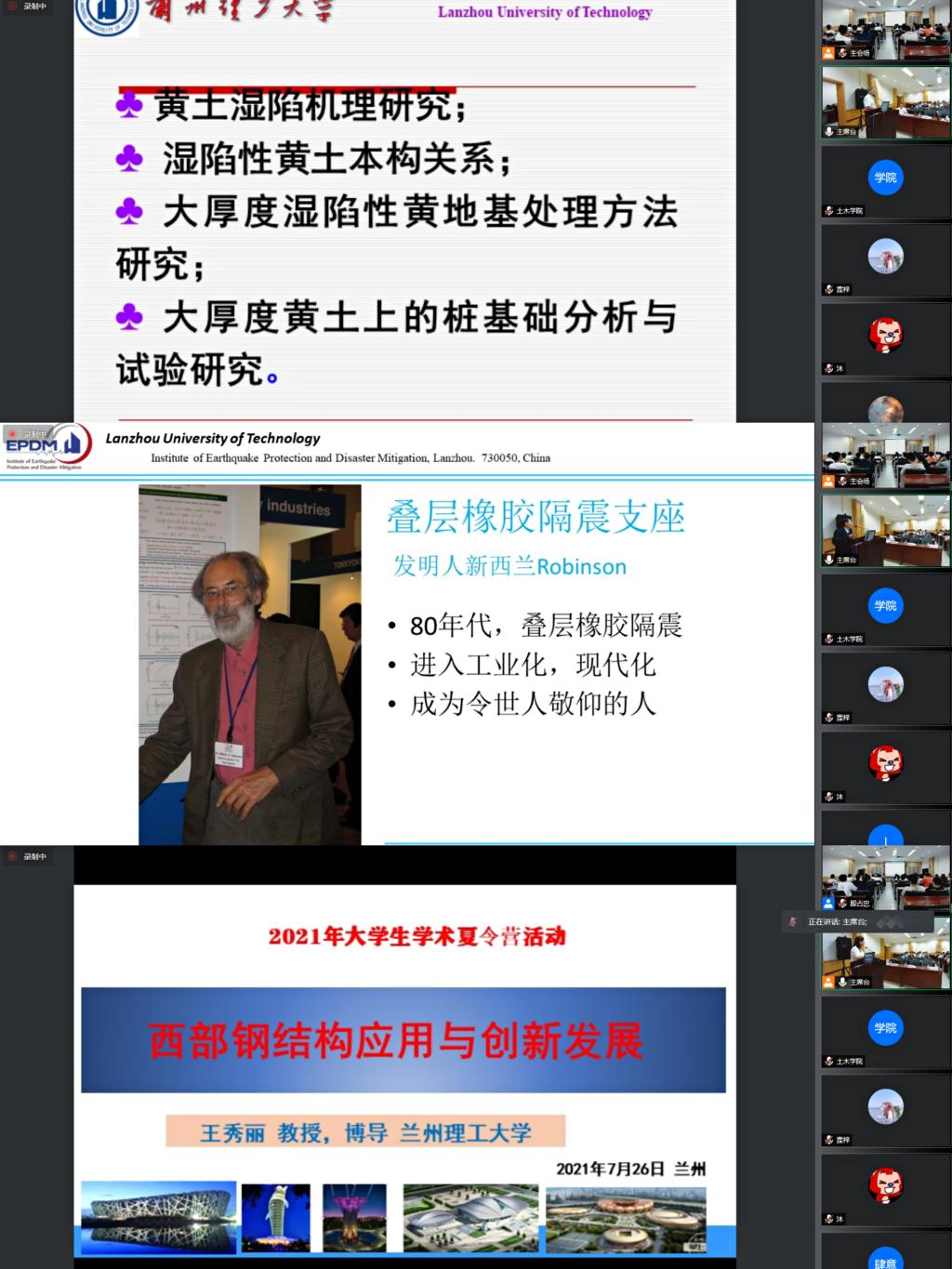 7月26日上午,学术夏令营正式拉开了帷幕,多场报告会依次在兰工坪校区逸夫科技馆小报告厅举行,公司经理王文达教授、朱彦鹏教授、杜永峰教授、王秀丽教授、副经理殷占忠教授、副经理李万润副教授、朱前坤教授、项长生副教授、李喜梅教授、石岩副教授、员工辅导员以及研究生教学秘书等15名老师参加了开营仪式,仪式由副经理殷占忠教授主持,线上有150余人同时在线观看。