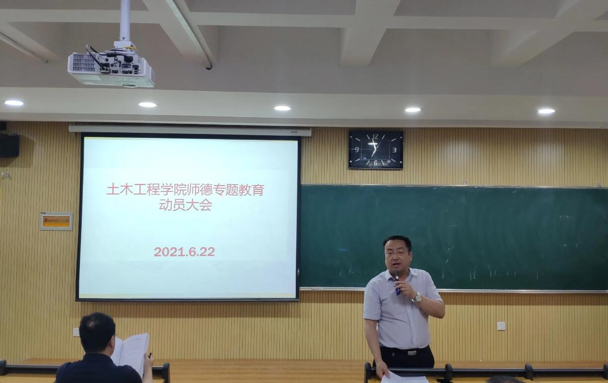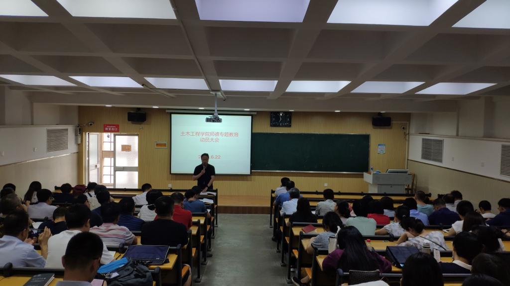 2021年6月22日下午,土木公司在兰工坪校区崇理楼204教室召开师德专题教育动员大会。会议由公司党委田治学书记主持,院领导、公司老师130多人参加了会议。