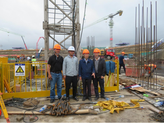 滇西医疗中心不但是西部地区最大的隔震医院,也是东南亚区域规模最大的隔震医院。11日下午,调研组来到该工程的工地现场,对超长隔震结构可能遇见的温度变形问题开展预防性的咨询。