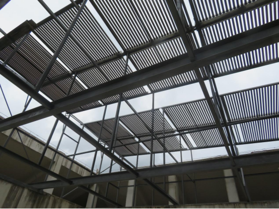调研组对屋顶太阳能集热管等非结构构件开展现场调研