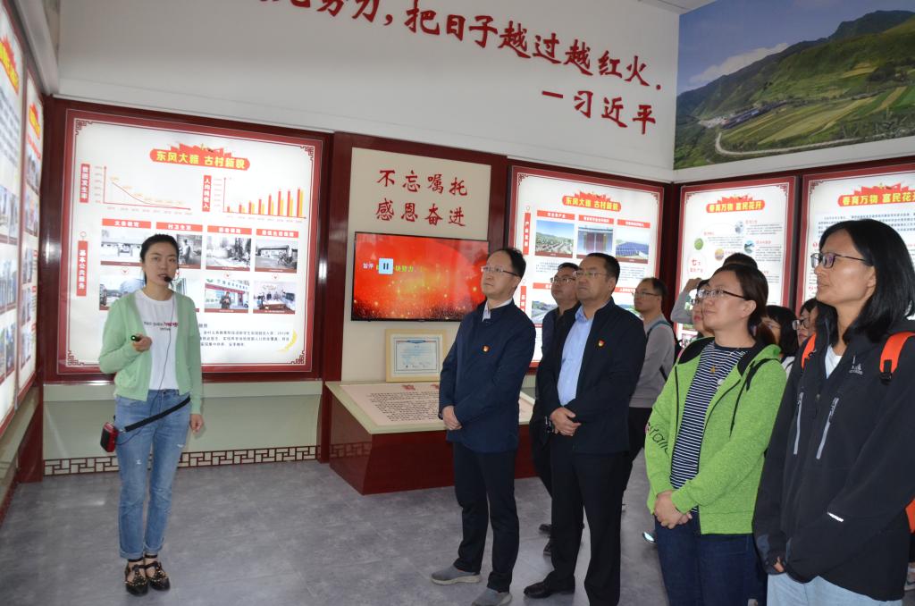 当天上午,老师们走进村史馆,在讲解员的带领下,详细了解了元古堆村坚决打赢脱贫攻坚中的奋斗历程,驻足观看了元古堆村的专题宣传片。了解到元古堆村在这几年的扶贫攻坚工作中在水、电、路、房等方面所做出的努力;也了解到元古堆村通过种植业、养殖业、劳务经济、加工业、乡村旅游、电子商务、光伏发电等富民产业为村民所带来的福利。元古堆村位于甘肃省定西市渭源县田家河乡,曾是渭源县出了名的贫困村,2012年年底之前,全村人均纯收入仅有1465.8元,贫困户221户1098人,贫困发生率高达57.3%。习近平总书记视察该村时曾说:“咱们一块儿努力,把日子越过越红火”,这一句话已经成为元古堆村父老乡亲脱贫攻坚、奔向小康的精神力量。在党建引领和社会各界的支持下,元古堆村干部群众努力奋斗,旧貌换新颜,交通显著改善、产业不断振兴、医疗保障完备,人民生活脱贫奔小康。大家在参观过程中感触良多,透过元古堆村天翻地覆的沧桑巨变,探寻美丽乡村建设的元古堆路径,鼓荡起乡村振兴的前进风帆,对乡村振兴事业满怀信心。