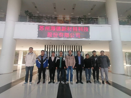 夏令营由金年会官方网站入口防震减灾研究所振动舒适度方向负责人朱前坤教授带队。4月8日,营员们来到常熟市,与苏州海德新材料科技股份有限公司开展企业交流。当天上午,海德科技公司副总经理吴志峰会见了夏令营全体成员,对师生们来访表达了欢迎。公司技术研发部付金伦工程师首先带领师生们参观了海德科技的生产线和系列隔震产品的成品。下午在会议室介绍了企业新技术研发和主打产品概况,随后付工带领师生们参观了企业的产品展室,进一步了解了企业生产情况。海德科技公司是专业研发及生产建筑、公路桥梁、轨道交通减隔震产品的现代化企业,主打产品为大直径隔震支座,最大直径为1600mm,为当前国内市场最大直径的隔震支座产品。