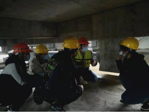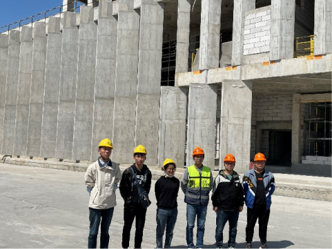隔震工程施工单位项目经理夏工与员工们在现场合影
