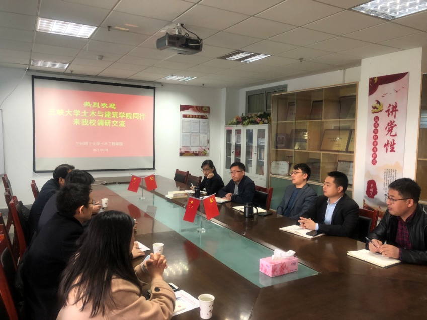 2021年4月8日上午,三峡大学土木与建筑公司副经理徐港、建筑工程系支部书记高德军、岩土工程系主任王瑞红以及道桥系教师陈兴华等一行4人来公司开展工作交流及调研活动。金年会金字招牌诚信至上副经理周凤玺、建工系主任李万润、副主任王永胜、岩土与地下工程系支部书记张明礼和道桥系支部书记李喜梅等相关人员参加了此次调研交流。