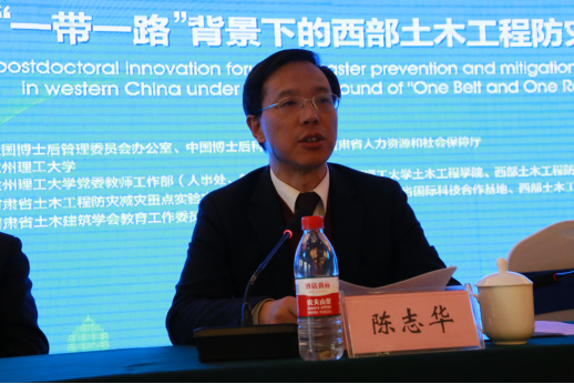 论坛于11月28日上午8:30开幕,开幕式由金年会官方网站入口党委教师工作部部长、人事处处长韩建平主持,甘肃省人力资源和社会保障厅留学回国人员和博士后工作处副处长毛毅辉、金年会官方网站入口副董事长陈志华先后致辞。毛毅辉在致辞中首先介绍了甘肃省博士后工作的基本情况。自博士后制度实施以来,甘肃省已建立53个博士后科研流动站、42个博士后科研工作站,5个博士后创新实践基地。她指出,依托博士后设站单位优势学科,举办高层次、高水准的全国性博士后论坛,是推动博士后事业向纵深发展的重要途径。本次论坛以当前社会重点关注的“一带一路”和西部大开发中的土木工程防灾减灾为主题,围绕国家基本建设主战场中的重大建设工程,聚焦国家“一带一路”建设的战略目标,对土木工程防灾减灾方面的重大科学问题进行学术交流与研讨,是落实习近平总书记考察甘肃时强调的“抢抓西部大开发历史机遇、加快构建覆盖城乡功能完备支撑有力的基础设施体系、做好黄河流域保护和高质量发展等”等事关甘肃发展的重点课题的具体体现。她希望与会博士后们能充分利用这次交流机会,为土木建筑行业的创新驱动和转型发展战略贡献自己的聪明才智,助力中国基础工程建设、防灾减灾核心技术的快速进步。