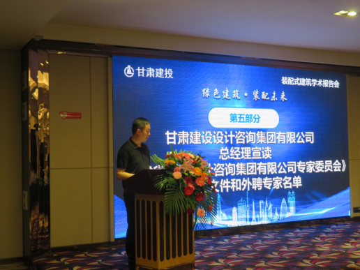 学术报告结束后,举行了甘肃省建设设计咨询集团公司装配式建筑专家委员会成立仪式。甘肃建投设计咨询集团总经理马岷成宣读《甘肃省建设设计咨询集团有限公司专家委员会》成立文件和外聘专家名单。公司土木公司杜永峰教授、王秀丽教授和设计艺术公司经理刘奔腾教授应邀担任专家委员会委员。