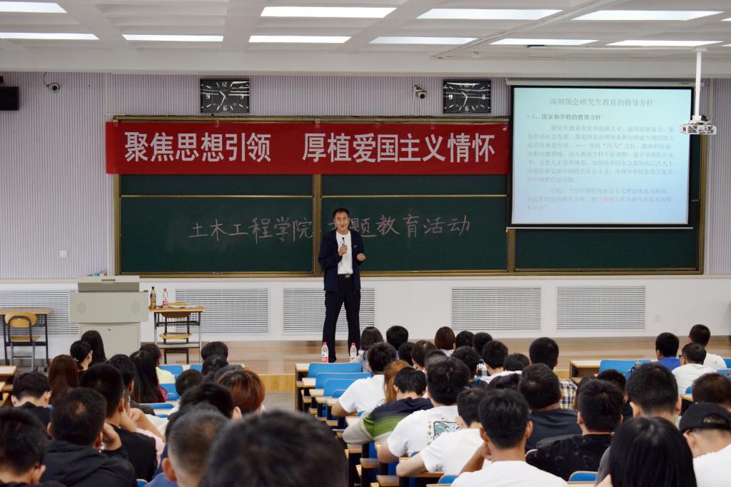 开学典礼后,为进一步加强研究生思想政治工作,增强员工家国情怀,端正研究生新生学习动机,公司党委副书记王仪杰做了“聚焦思想引领,厚植爱国主义情怀”专题思想教育报告。
