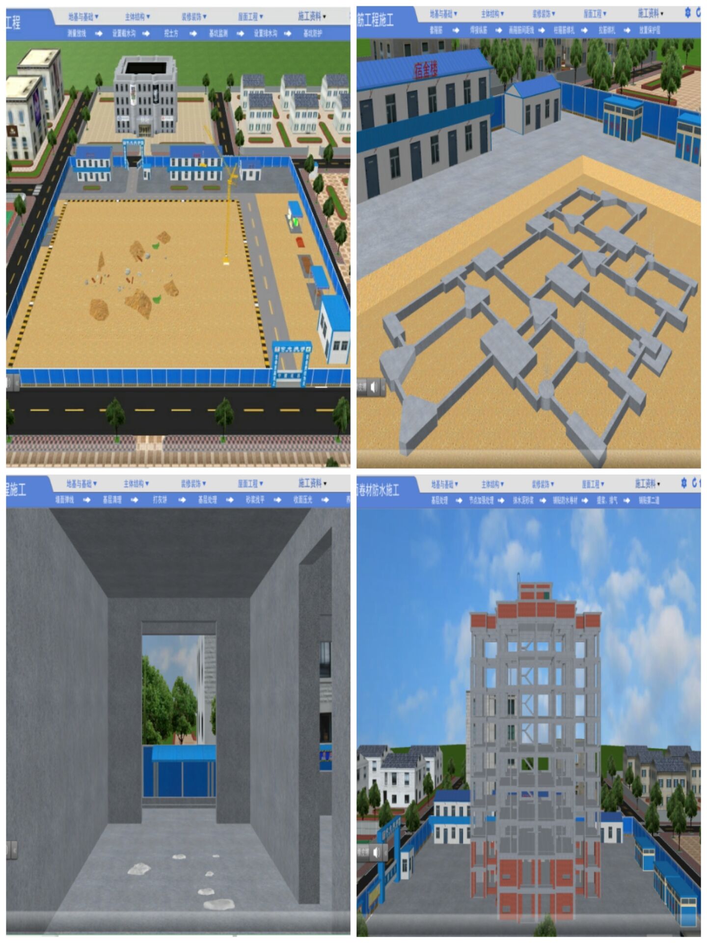 建筑工程3D仿真实训系统是基于3D微课技术,动态模拟真实施工场景和施工技术要点,实现施工工艺过程的连续性模拟和不同视角与节点的选择性模拟,系统化和重点化完成从基础工程到装饰装修工程全过程施工仿真。通过超强现实信息化技术支持,给予员工良好的实习感观,清晰的实习流程,详尽的实习内容,为毕业实习教学提供了优质的教育平台。