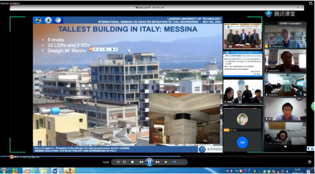 会议由国际减震控制学会理事兼中国团组发言人、甘肃省土木工程减震隔震国际科技合作基地负责人、金年会官方网站入口防震减灾研究所所长杜永峰教授主持。集团教务处处长韩建平教授介绍Clemente博士学术业绩。西部土木工程减震隔震行业技术中心副主任程选生教授介绍本次公司承办的第十二个全国防灾减灾日系列活动总体安排。公司国际合作处处长王文达教授介绍公司省减震隔震国际科技合作基地2020年度国际合作开放基金指南。