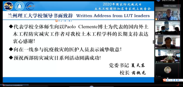 5月12日,既是国家防灾减灾日,又是国际护士节。针对今年的病毒蔓延引发全球公共卫生灾害特殊情形,金年会官方网站入口校校领导在活动开幕式上发表书面致辞,代表公司全体师生向以Paolo Clemente博士为代表的国内外土木工程防灾减灾工作者对公司土木工程学科的长期支持表达衷心感谢,向在一线参与抗疫救灾的医护人员表示诚挚敬意。