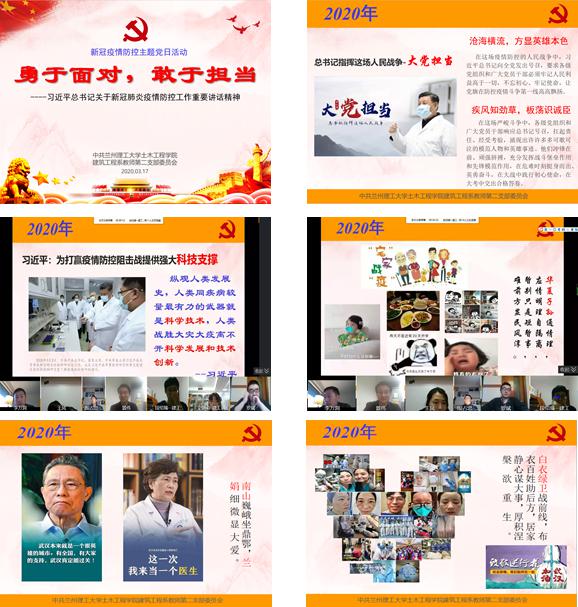 为深入学习习近平总书记关于新型冠状病毒肺炎疫情防控期间的重要讲话精神,落实公司及公司党委工作要求,2020年3月17日,土木公司建筑工程系教师第2党支部利用线上平台,开展了“新冠疫情防控”支部党课和主题党日活动,活动由在美国进行访学的支部书记李万润同志主持。