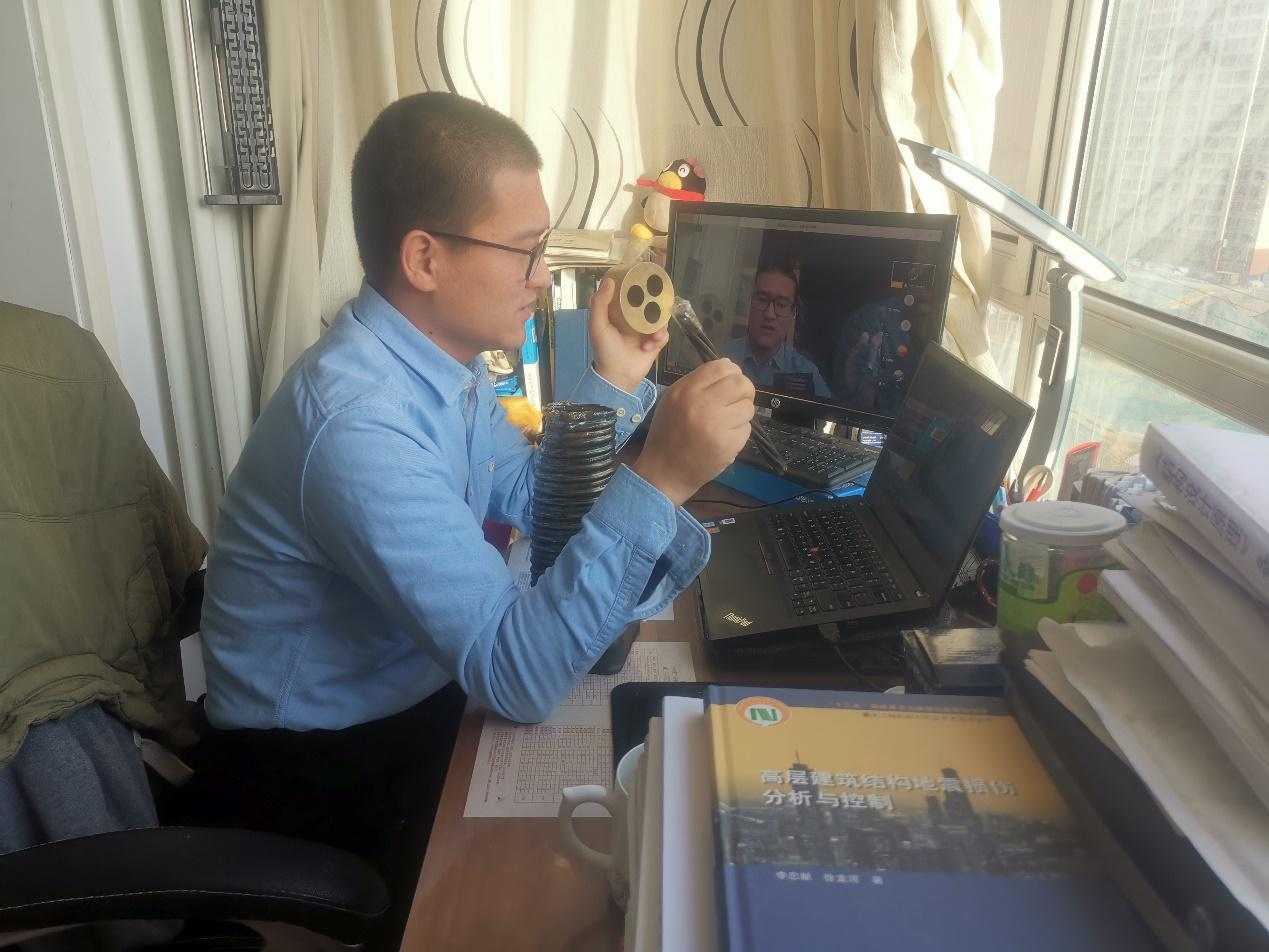 借助超星线上平台和在线直播平台打造线上线下一体化的教学体系,在直播中利用实体教具为员工演示其构造和运作机理,使相对抽象的内容变得更加形象具体,增强了员工学习的体验感和带入感。同时,在《结构动力学》第一节课直播中,结合课程内容引入思政元素,鼓励员工用实际的行动力战胜病毒,打造健康体魄、追求动力人生。