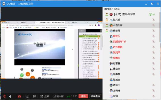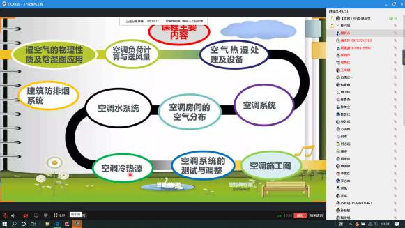 2020年3月2日,一个特殊的日子,经历了长久的抗疫战斗后公司开始网课第一天,早上9:50分,公司正在加拿大不列颠英属哥伦比亚大学访学的厚彩琴老师克服十六个小时的时差,准时开始建筑环境与能源应用工程专业《空调工程》课程的实时授课。为了顺利进行QQ直播,厚老师和土木公司副经理殷占忠、建环系韩喜莲老师共同连线,组织员工顺利进入课堂,完成了2小时的课程教学。