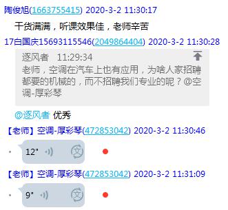 除了正常访学听课及交流学习项目外,厚彩琴老师按照公司多次召开视频会议的要求,积极准备教学工作,在自己录制课程视频的同时,汲取了交流期间国外先进的教学方法和经验,结合工程实际及员工以后的就业需求,从设计、施工、设备厂家不同角色出发,给员工提供多方位的学习资源,努力为员工提供高质量的教学服务。在上课前夕多次测试,她发现学习通网路堵塞的情况下,及时调整备用方案,采用QQ视频教学,结合在国外课堂观课交流学到的思路和方法,第一堂课从学习方法,课程授课方式,资源介绍及本课的综述,对本课程进行了整体系统的介绍,激发员工学习兴趣和求知欲望。课程资源中提供给员工的关于飞机空调知识的英文视频,在员工中引起了很好的反响。