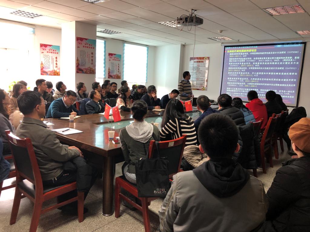 1月11日上午,在金年会金字招牌诚信至上会议室,李元齐教授与金年会金字招牌诚信至上广大师生就“如何建设好教育部工程中心”和“国家自然科学基金申报经验交流”相关问题进行了深入交流讨论,金年会金字招牌诚信至上经理周勇教授向李元齐教授介绍了依托于公司的“西部土木工程防灾减灾教育部工程研究中心”的建设情况,李元齐教授随后就工程中心的建设问题给出了建议,并与多名教师进行了讨论。李元齐教授随后向广大师生介绍了国家自然科学基金申请经验,并强调了2020年国家自然科学基金申请需要注意的问题。王秀丽教授、殷占忠教授、孙玉萍教授、吴长副教授、李晓东副教授、周锟副教授、王永胜副教授、王景玄副教授、许继祥副教授、杨国俊副教授以及多名教师参加了报告会,并与李元齐教授进行了深入的交流,对推动公司基金申报起到了极大的作用。
