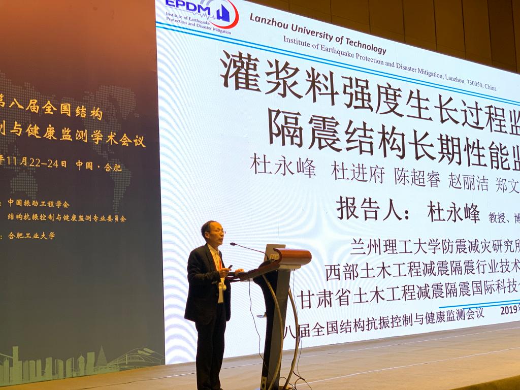 11月22日-24日,第八届全国结构抗振控制与健康监测学术会议在合肥召开。会议由中国振动工程学会和结构控制与健康监测专业委员会主办,合肥工业大学承办。来自境内外从事结构抗振控制与健康监测的600余位学者和工程技术人员参加会议。中国工程院杜彦良院士、杨善林院士、杨永斌院士、王泉院士等15位知名专家做大会报告。中国振动工程学会结构控制与健康监测专业委员会常务理事、公司防震减灾研究所所长杜永峰教授、人致激励研究方向负责人朱前坤副教授、杨国俊博士与土木公司桥梁工程系主任项长生副教授和部分研究生参加会议。