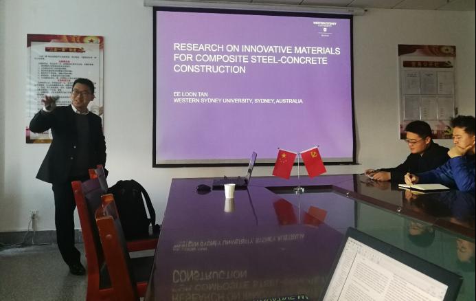 2019年11月12日至17日,应金年会金字招牌诚信至上和甘肃省高校协同创新团队“多灾耦合下钢与混凝土组合结构混合结构性能与综合防灾”负责人王文达教授邀请,澳大利亚西悉尼大学Ee Loon TAN博士来金年会金字招牌诚信至上进行了科技合作和学术交流。访问期间,Ee Loon Tan博士与王文达教授团队成员讨论的科技合作有关事宜,并与团队成员赴南京参加了中国钢结构协会钢-混凝土组合结构分会第十七次学术会议。