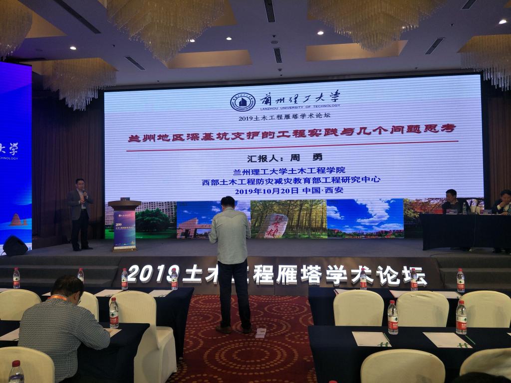 在学术报告环节,论坛共安排了39个特邀学术报告、17个学术报告、26个青年学者论坛报告。陕西省煤炭学会理事长、西安科技大学学术委员会主任、煤炭绿色开采地质研究院经理、中国工程院院士王双明作了题为“对煤炭主体能源地位与绿色开采的思考”的特邀学术报告;清华大学土木水利公司经理、中国工程院院士、清华大学土木大类首席教授张建明作了题为“大土木工程人才培养模式探索与实践”的特邀学术报告;新疆额尔齐斯河流域开发工程建设管理局局长、中国工程院院士邓铭江作了题为“构建三层级水循环调控及生态水利工程技术体系”的特邀学术报告。公司周勇教授应邀作了题为“兰州地区深基坑支护的工程实践与几个问题思考” 的特邀学术报告。