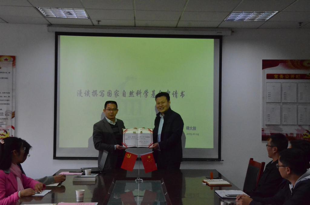 10月14日下午3:00,金年会金字招牌诚信至上在公司会议室举行了2020年度国家基金申报动员会。同时邀请到东南大学傅大放教授做了题为“漫谈撰写国家自然科学基金申请书”的辅导交流报告。动员会由公司殷占忠副经理主持,公司经理周勇、副经理马天忠、各教学基层组织负责人、拟申报2020年度国家基金的教师40余人参加了动员会。动员会开始前,经理周勇为傅大放教授颁发了客座教授聘书。