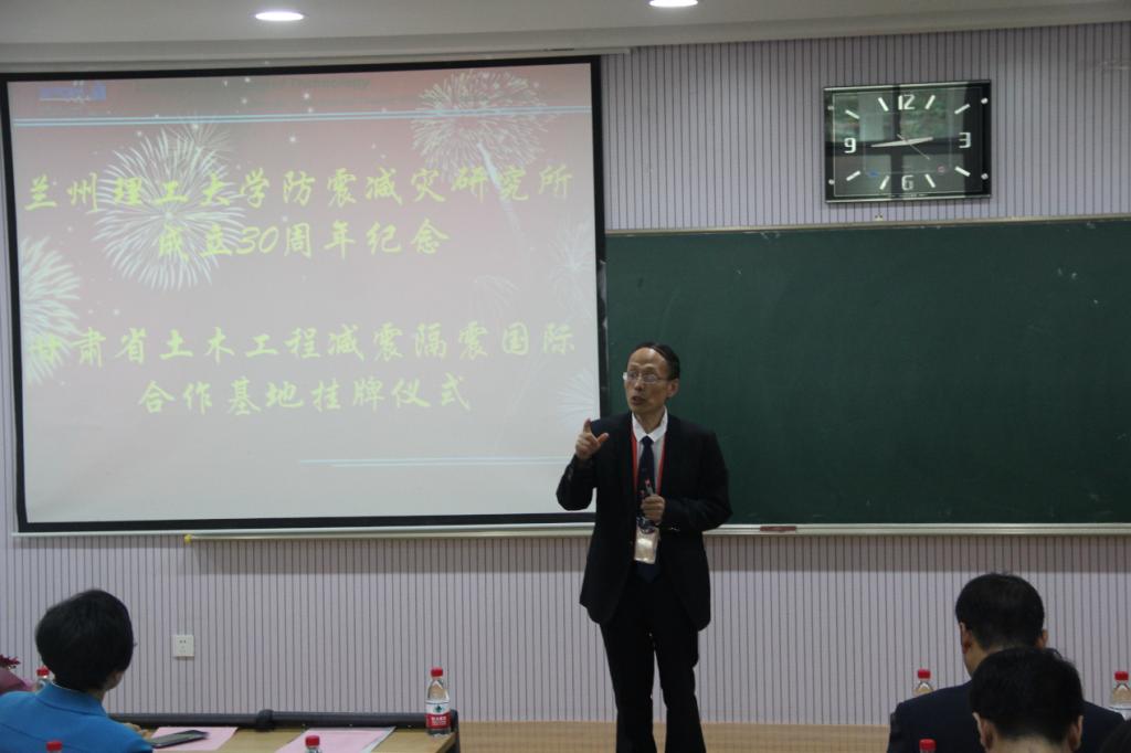 2019年9月20日下午,伴着金年会官方网站入口百年校庆的喜悦气氛,金年会官方网站入口防震减灾研究所成立三十周年庆祝活动甘肃省土木工程减震隔震国际科技合作基地挂牌仪式在兰工坪校区举行。防震减灾研究所学术带头人和部分在校的研究骨干成员以及来自广州大学、河北工程大学、西北农林科技大学、西北民族大学、商丘师范公司、宁夏大学、山西大学、青海大学、兰州工业公司等本研究所毕业员工代表近60人参加了活动。活动由西部土木工程减震隔震行业技术中心办公室主任、金年会官方网站入口防震减灾研究所桥梁隔震学术骨干李喜梅博士主持。