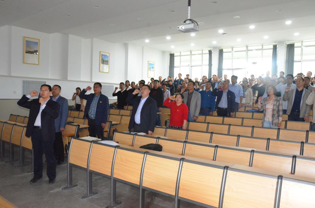 公司经理周勇带领全院教师进行师德师风建设的承诺宣誓。通过宣誓活动,提高了全院教师的思想认识,增强了对立师德铸师魂的责任感、使命感。