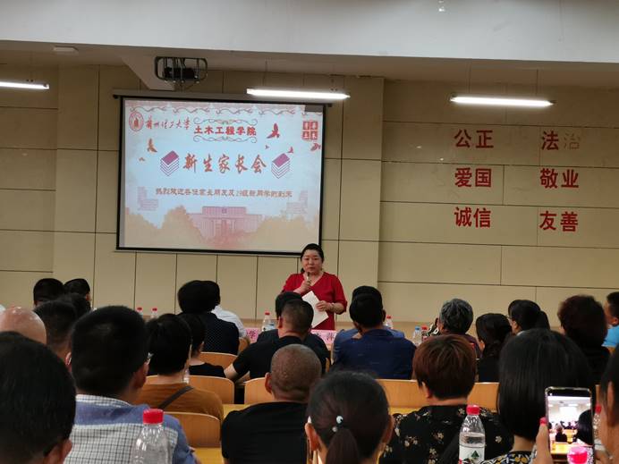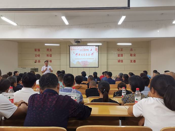 8月29日下午14:30,土木公司在彭家坪校区2#108教室顺利召开了2019级新生家长见面会,公司党委书记田治学、经理周勇教授、副经理殷占忠教授、副经理李萍教授、副经理马天忠副教授、员工办公室主任张海霞、2019级辅导员及380余名新生家长参加了此次会议。