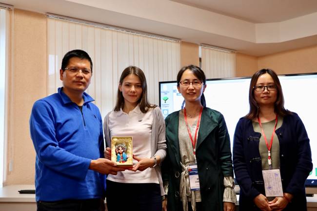 向圣彼得堡矿业大学赠送的兰理工百年校庆Logo T恤衫、公司宣传册和中国元素礼物