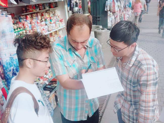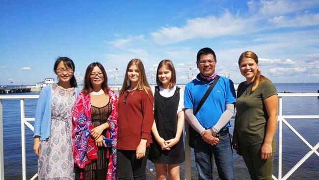 除此之外,土木公司圣彼得堡实践团在老师的带领下,与当地各阶层百姓进行了充分的接触和交流,包括:船员、来访过中国的工程师、小作坊面包店老板、餐厅工作人员、垂钓者、有轨火车售票员、中员工、国外游客等等,用肢体语言、英语、简单的中文或者翻译器进行沟通,即使存在语言上的不便,但沟通却没有任何的障碍,友好平和、其乐融融,他们都有着想更进一步了解中国的意愿,希望将来到访中国,或者来中国学习。师生穿着带有工大百年校庆Logo双语T恤衫,有很高的辨识度,不仅为实践活动的开展提供了身份上的便利,同时也展示了公司甚至中国老员工的形象。