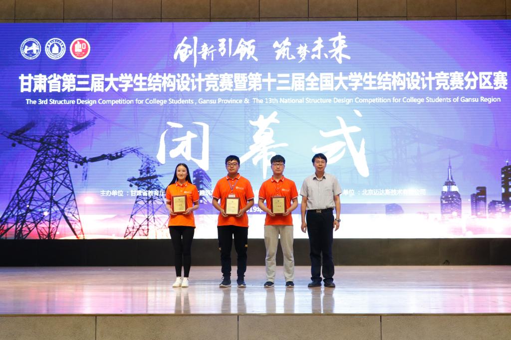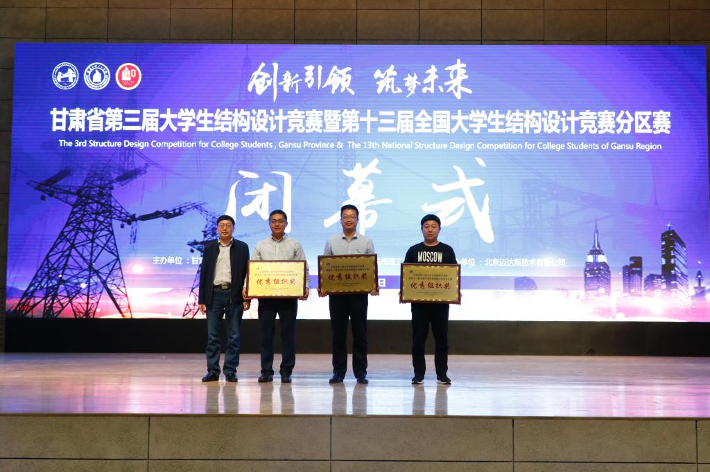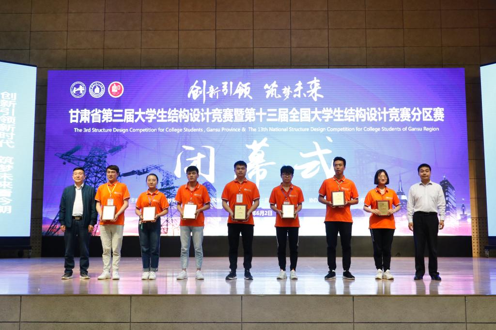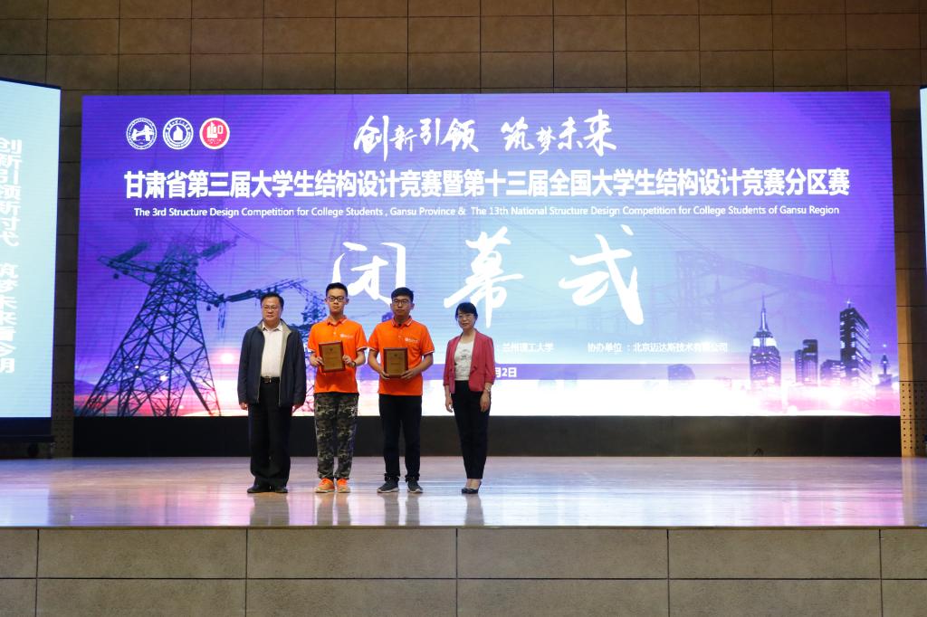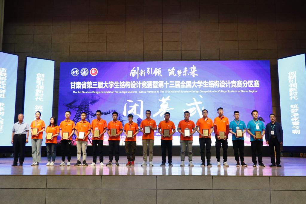 在加载环节结束之后,于下午5点闭幕式正式开始。闭幕式由金年会jinnian经理周勇教授主持。竞赛专家委员会主任蔺鹏臻教授从结构设计、研究方法、模型制作等方面对竞赛作品进行了全面深入的分析与点评,在肯定成绩的同时,指出了不足及改进之处,他希望同学们再接再厉,在不断实践中寻求新的突破,取得更优异的成绩。甘肃省教育厅高教处姜言卿副处长宣布了比赛结果,本届大赛共评选出一等奖3项,二等奖7项,三等奖10项,最佳创意和最佳制作奖各1项,优秀组织奖3项。经过评委会评选,获得大赛一等奖的是兰州工业公司第一代表队、兰州交通大学博文公司博文第一代表队、金年会官方网站入口纯净苍穹代表队,兰州大学乌堆代表队等7个代表队荣获二等奖,兰州大学木擎苍代表队等10个代表队荣获三等奖,甘肃林业职业技术公司大吉大利代表队等14支队伍活动优秀奖,兰州大学乌堆队荣获最佳制作奖,兰州交通大学致远队荣获最佳创意奖,金年会官方网站入口、兰州工业公司和兰州交通大学博文公司获得优秀组织奖。