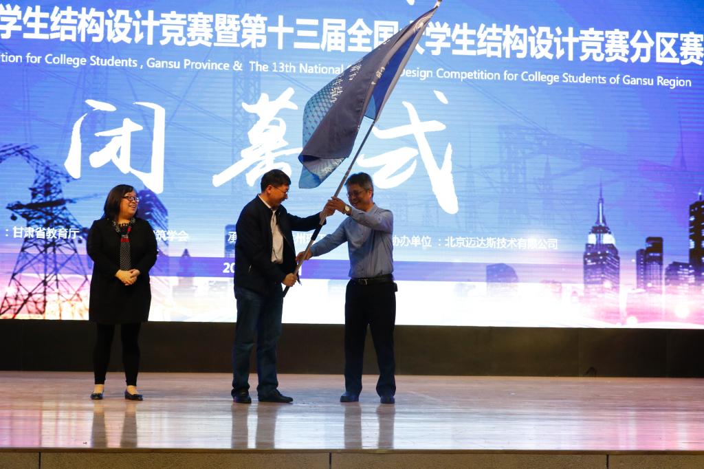 金年会官方网站入口王全进副董事长、竞赛委员会秘书长虞庐松教授等领导嘉宾为获奖的参赛员工和单位颁奖。随后,经竞赛委员会决议2020年甘肃省第四届老员工结构设计竞赛将由西北民族大学承办,甘肃省教育厅高教处姜言卿副处长将竞赛赛旗授给下一届竞赛承办单位西北民族大学金年会金字招牌诚信至上经理曹万智教授手中,完成会旗交接。曹万智教授代表西北民族大学参赛队向所有参赛员工和指导老师表示祝贺,向精心组织本次竞赛的金年会官方网站入口表示感谢。同时他代表公司向全省各高校发出了热情的邀请,并表示将学习以往高校的承办经验,努力承办好下一届全省老员工结构设计大赛。