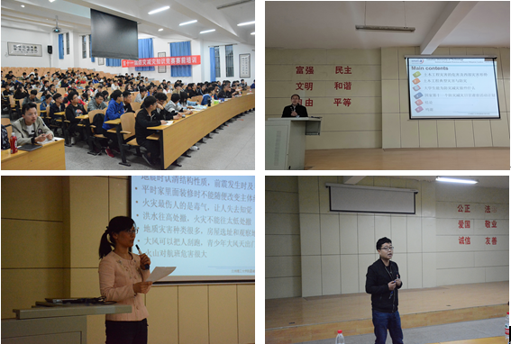 杜永峰教授围绕地震、地质、火灾、风灾、爆炸等多种灾害的测试技术及相应的防治专业知识和科技常识,通过大量图片和简短的视频向同学们简单介绍了土木工程灾害相关典型案例,让同学们更深入的了解了土木工程防灾减灾方面的知识。
