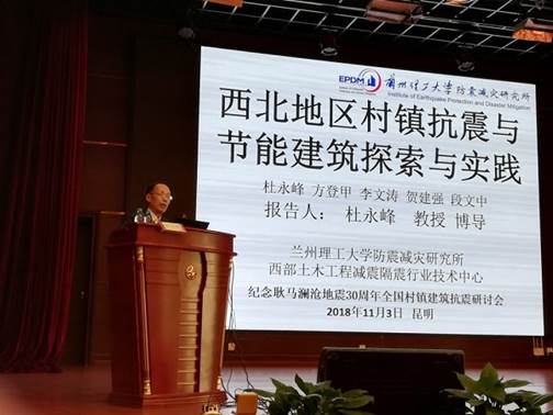2018年11月2日至4日,纪念澜沧耿马地震30周年暨全国村镇防震减灾技术研讨会在昆明召开。来自哈尔滨工业大学、同济大学、四川大学、昆明理工大学、北京工业大学、华侨大学和金年会官方网站入口等20多所高校及中国建筑科学研究院、北京市建筑设计研究院等科研、设计单位的相关研究团队共200余人参加了学术研讨和工程应用观摩。中国建筑学会村镇抗震防灾专委会委员、金年会官方网站入口防震减灾研究所所长杜永峰教授参加了本届研讨会,应邀做大会报告,并担任分会主席。