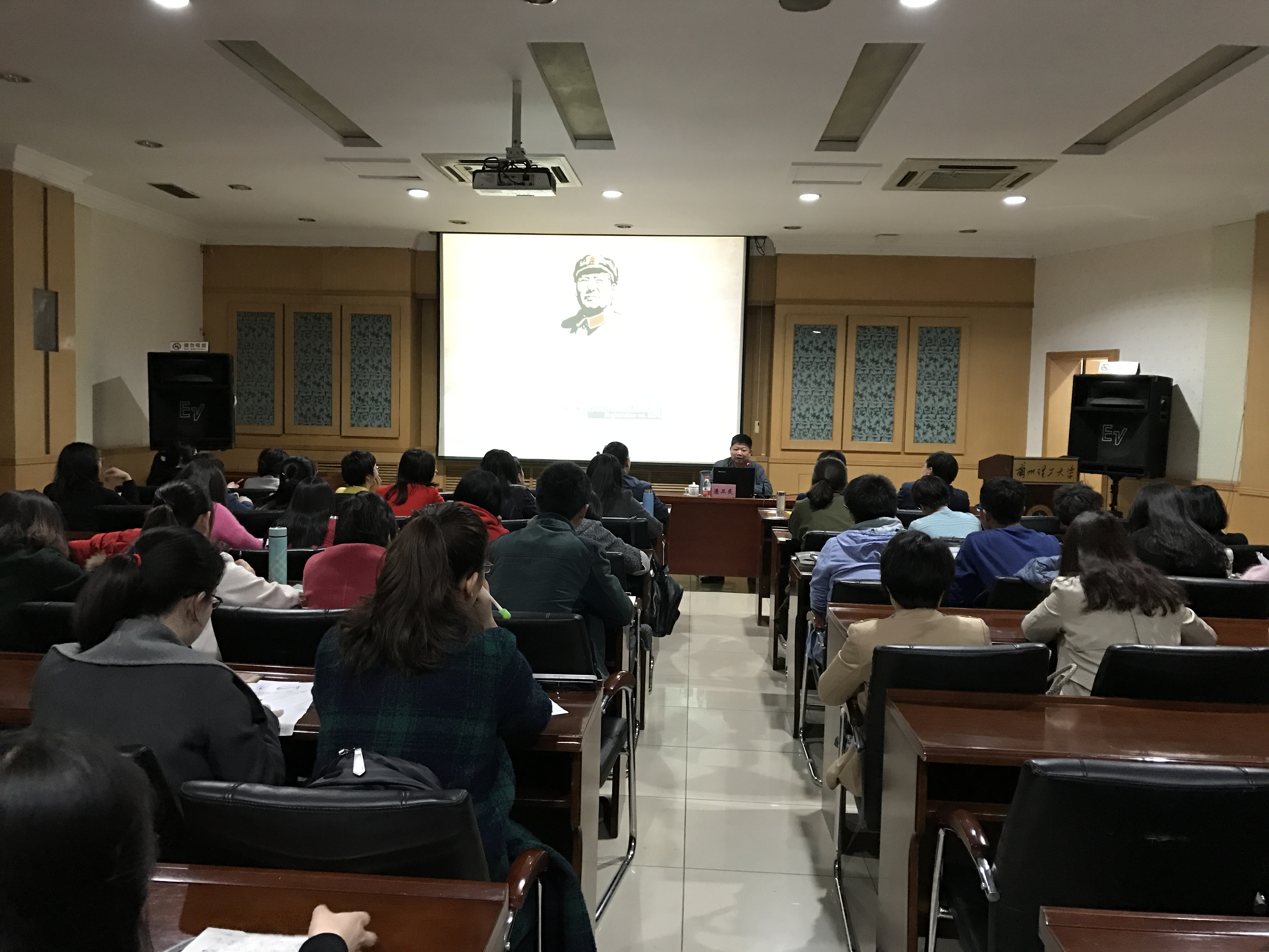 会上,潘卫民教授向与会的师生阐述中国特色社会主义 “四个自信”,在翻译文化传承中的地位与作用,以及《毛选》在海外传播与影响以及其英译的文化自信等内容,深入浅出地对翻译中的文化自信进行了全方位的解读。