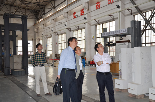 报告会后,在韩建平教授、杜永峰教授等陪同下,王刚教授参观了土木工程结构大厅,双方就进一步合作研究及员工创新能力的培养等问题进行了深入的讨论。