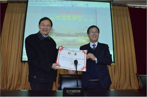 公司聘任成虎教授为兼职教授聘书。他表示将进一步关注、支持公司工程管理专业的专业建设、学科发展和团队培养。
