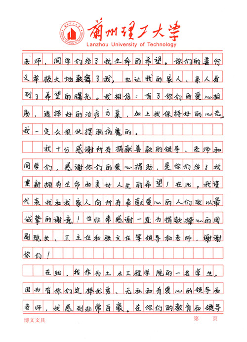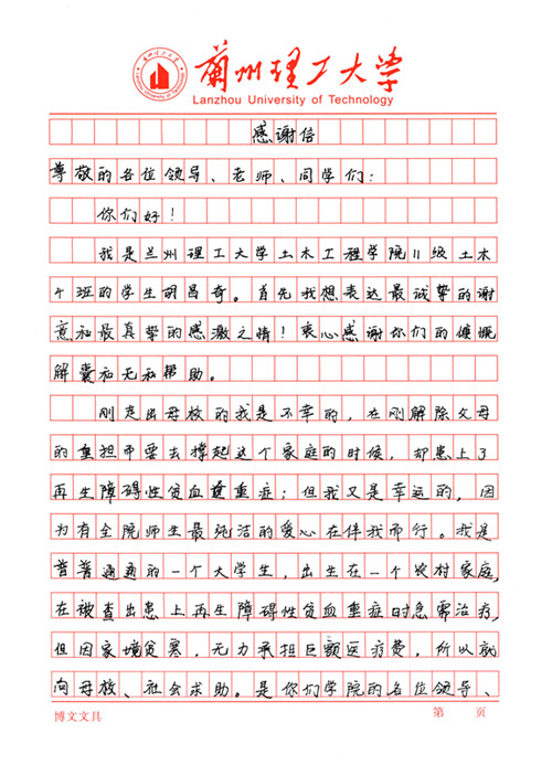 今年教师节,公司收到一封公司2011级土木工程4班东乡籍员工胡昌奇同学的求助信。信中说,他今年6月份刚从公司毕业,在等待工作之际,突感身体不适,被医院诊断为再生障碍性贫血。一场重病对于一个普通家庭来说就是一场近乎毁灭性的灾难。几十万元的治疗费让胡昌奇的父母,来自甘肃东乡县偏僻山区的普通农民终日以泪洗面,并且他的父母本人患有腰椎病等顽疾,缺钱治疗,妹妹高三毕业只能辍学打工,维持家用,也只能是杯水车薪。信中透出了他身患白血病无钱医治的悲哀与无奈和永不言弃、渴望活下去的信念。最后在信中说在他无能为力、走投无路的情况下,只能向他的母校—金年会官方网站入口求助,希望母校能救救自己的学子,救救他们摇摇欲坠的家庭。