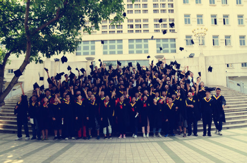 与会公司领导和学位评定委员会委员为获得学士学位的毕业生颁发了学位证书,正冠拨苏。全体师生合影留念。