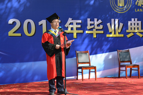 在庄严的国歌声中,学位授予仪式拉开帷幕,韩建平教授致辞,提议毕业生们用掌声向父母、母校、老师和所有给予他们关心和帮助的人表示感谢。他说,大学本科生活是人生路上的一个里程碑。今天的典礼过后,绝大多数同学将辞别母校,走向新的天地,直面种种困难与挑战。韩建平经理向同学们提出三点希望:第一,志存高远,坚守梦想。无论将来在什么样的岗位,从事什么样的工作,勿忘初衷,做最好的自己,勇敢去追寻自己的梦想!第二,静水流深,有容乃大。希望大家铭记母校“奋进求是”的校训,秉承兰理工人自强不息的“红柳精神”,保持自信、理性、平和的心态,真正沉下心来,建设国家、造福社会。第三,勤学不辍,与时俱进。在今后的工作生活中,大家必须不断学习新的知识和技能,始终保持旺盛的求知欲和创新能力,与时俱进,才能在日益激烈的社会竞争中保持优势,迈向成功。公司希望全体毕业生不仅要有解决专业问题的知识和干事创业的能力,更要具有遭遇困难坎坷都能从容应对的魄力、身处艰难险阻都能百折不挠的韧性和面对惊涛骇浪都能力挽狂澜的信心,希望全体毕业生要有公司自信、专业自信,更要将这种自信带入下一个征程,攻坚克难,踏实工作,勇于担当,敢于创新,在各自的工作岗位或学习深造中取得更大的成绩!