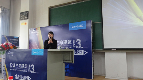 美的集团中央空调事业部国内营销公司经营部市场推广向佳女士从“大赛概况”、“怎么参与”、“怎样才能获奖”、“收获”四个方面简单介绍了本次大赛的内容。她强调,通过参加大赛能够很好地提升同学们的软件应用能力、绘图能力,提早熟悉工程设计,对以后的就业有很大的帮助,希望同学们踊跃报名参加。土木学院建筑环境与能源应用工程专业2012届毕业生、美的集团甘肃分部销售业务部区域经理马新圣从自己参赛、参加工作后的体会、美的产品介绍等方面为同学们做了详细讲解。
