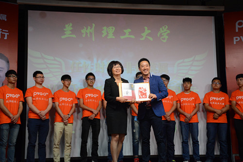 在校园红人提问环节中,刘佳勇针对校园红人提出的问题,从如何营销自己、经营自己、如何选择未来的发展方向等方面进行全面细致的解答,并对具有老员工就业创业服务的平台、老员工就业创业能力的训练营之称的PVGO项目进行了详细阐释。刘佳勇先生深情地讲道,“大学是人一生中最重要的试错阶段,但企业不会容许你犯错,希望你们在大学中学会成长。”活动最后,员工就业指导服务中心李竹梅主任代表公司向刘佳勇先生赠送纪念品。