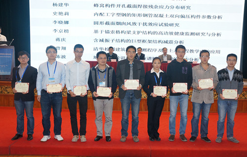 据悉,王秀丽老师、吴长老师、博士生马肖彤、梁亚雄老师的题为《荷载非对称分布下单层球壳的动力倒塌振动台试验研究》和硕士生韩祎、博士生王景玄、王文达老师的题为《内配型钢方钢管混凝土偏压构件受火全过程数值模拟》的两篇论获得优秀论文一等奖;朱彦鹏老师、博士生李京榜、叶帅华老师、硕士生张强的题为《基于锚索格构梁支护结构的高边坡健康监测研究与分析》和史艳莉老师、硕士生车向龙、博士生王景玄的题为《内配工字型钢的矩形钢管混凝土双向偏压构件参数分析》的两篇论文获得二等奖。
